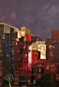 Abstract; painted pieces of paper on paper
